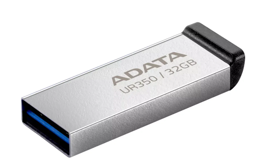 ADATA UR350 32 GB ir kompakta un izturīga USB zibatmiņa ar USB 3.2 Gen 1 interfeisu, kas nodrošina ātru datu pārraidi un savietojamību ar USB 2.0. Izbīdāmais savienotājs bez vāciņa pasargā portu un padara ierīci ērtu ikdienas lietošanai. Piemērota dokumentiem, foto, video un citiem failiem.