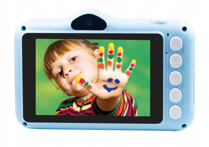 Digitālā kamera bērniem ar iespēju saglabāt fotoattēlus un videoklipus MicroSD / MicroSDHC kartē ar ietilpību līdz 32 GB (karte nav iekļauta komplektā)