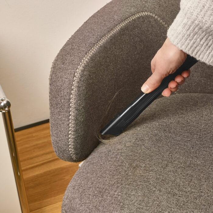 Bagātīgs komplekts: XXL uzgalis mīkstajām mēbelēm, elastīgs spraugu uzgalis, Click-Brush sistēma, spraugu un mēbeļu uzgalis, kā arī piederumu turētājs uz sūkšanas caurules.