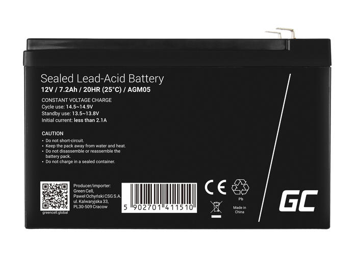 Green Cell CUBE LiFePO4 7Ah 12.8V 89.6Wh Lithium Iron Phosphate Battery for UPS, Monitoring