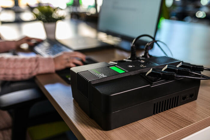 Garantija: 24 mēneši (12 mēneši akumulatoram); Jauda: 600VA (360W); Tips: Aizsardzība pret pārslodzi: Aizsardzība pret pārslodzi: Jā; Produkta kods: Ražotājs: UPS06; Ražotājs: Green Cell; Pārsprieguma aizsardzība: Izmērs: 270 x 190 x 90 mm; Svars: 3; Indikators: LCD panelis; Savienojamība: ieejas spriegums: 162-290 V / 81-145 V; Ieejas frekvence: 50/60 Hz ar pielaidi līdz 10%; Izejas spriegums: 230 V; Izejas frekvence: 50 Hz / 60 Hz; Akumulatori: 12V 7Ah akumulators; Kontaktligzdas: reakcijas laiks: tipisks 2-6 ms