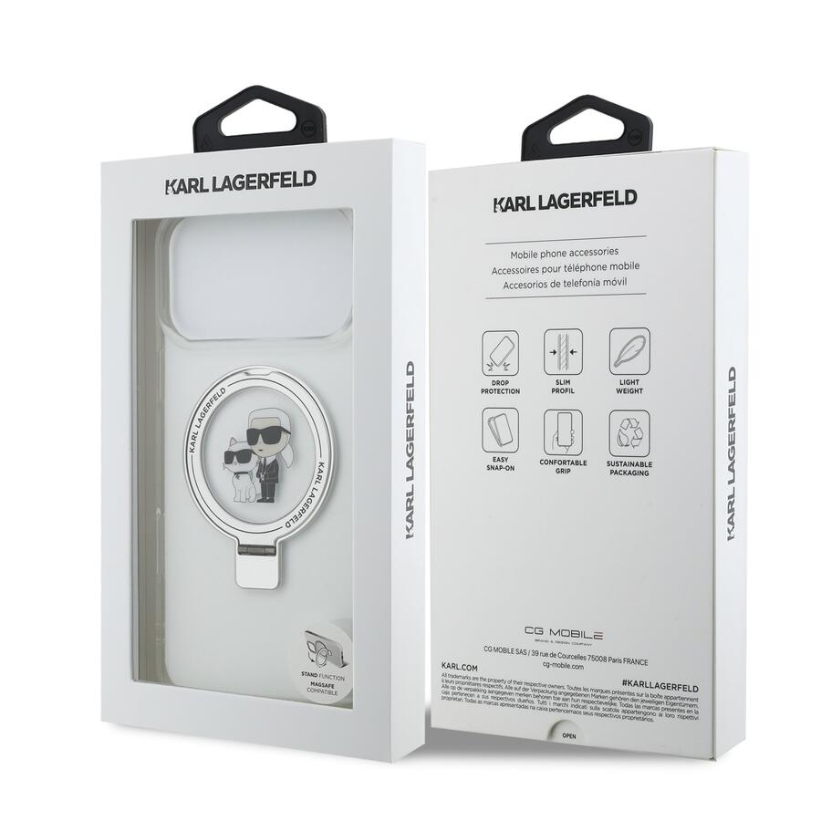 Karl Lagerfeld Ringstand Karl and Choupette MagSafe aizmugurējais vāciņš ir lielisks aksesuārs visiem stila un praktiskuma cienītājiem.