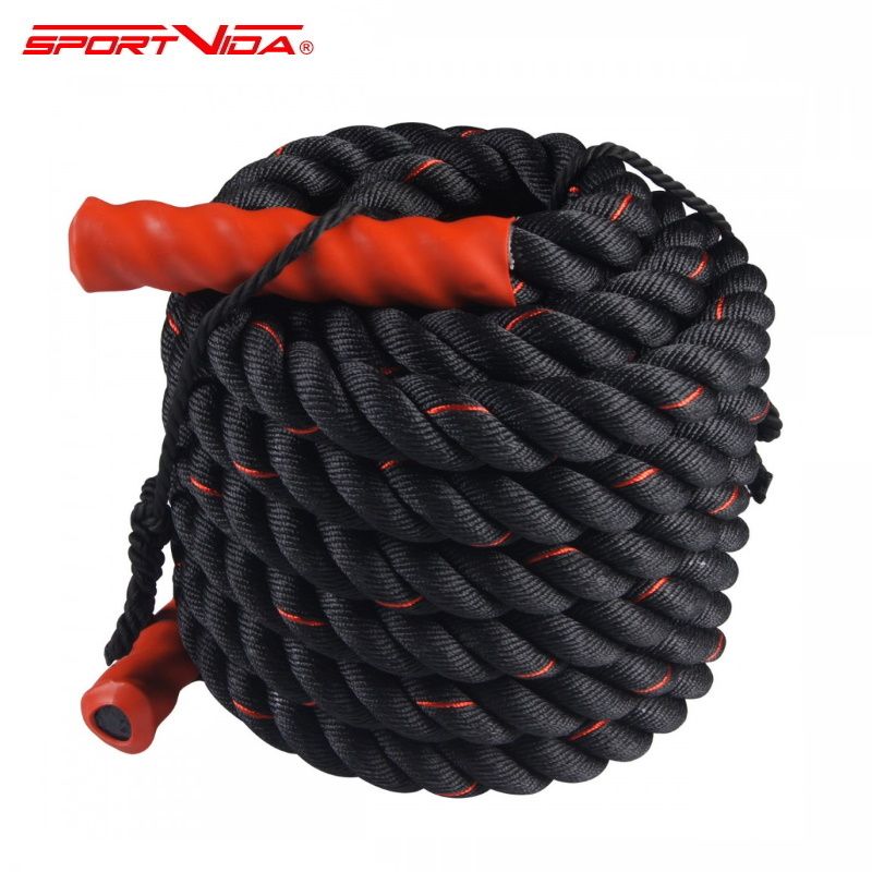 SportVida Lecamaukla Aerobikai un CrossFit 300cm regulējams garumns ar 15.5cm rokturiem Sarkana