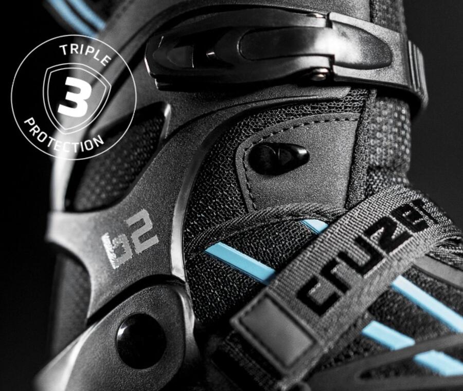 Jūsu ērtībai un drošībai Cruzer B2 ir trīskārša stiprinājumu sistēma. Savukārt sānslīdes komponente ir veidota tā, lai maksimāli palielinātu braukšanas komfortu. Augstas kvalitātes alumīnija SKID sakausējums garantē izturību, vienlaikus nodrošinot vieglas skrituļslidas.
