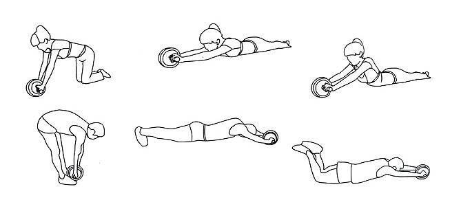 Vingrinājumi ar rullīti sastāv no riteņa pārvietošanas uz zemes uz priekšu - cik vien iespējams - un pēc tam atgriešanās sākuma stāvoklī. Jūs varat vingrot, stāvot, sēžot un nometoties ceļos uz ceļiem. Lai pasargātu ceļus no varžacīm, komplektā ir iekļauts speciāls paliktnis!