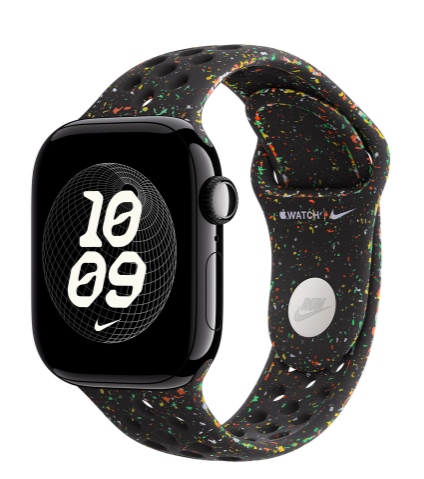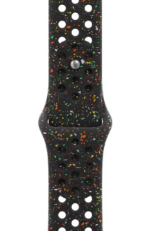 Nike Sport Band ir izgatavota ar kompresijas formētām perforācijām elpojamības nodrošināšanai, un tā ir izturīga un stingra, taču pārsteidzoši mīksta. Tai ir krāsainas pārslas, kas veido nejaušu rakstu, padarot katru siksniņu unikālu. Gludais, blīvais materiāls eleganti krīt pāri plaukstas locītavai un ir ērts saskarē ar ādu. Alumīnija aizdare ar kniepadatu un ieloces palīdzību, uz kuras rūpīgi iegravēts Run Swoosh logotips, piešķir kniepadatai svaigu, matētu apdari.