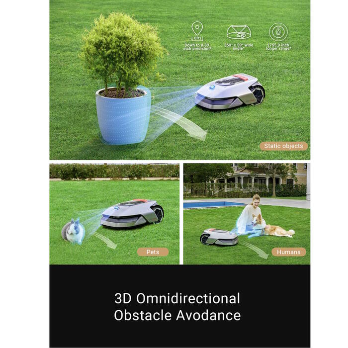 Pateicoties iebūvētai neirālai apstrādei un AI atpazīšanai, robots var atšķirt starp statiskiem un kustīgiem objektiem, piemēram, puķu dobēm, rotaļlietām, mājdzīvniekiem un koku saknēm – izvairoties no sadursmēm un pārtraukumiem zāles pļaušanā. - Precīza apmalju pļaušana