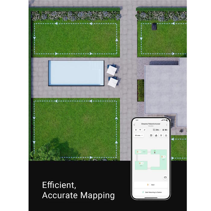 Viegli definējiet vairākas pļaušanas zonas, izveidojiet neieejamās zonas vai piešķiriet prioritāras zonas, izmantojot Dreame Home lietotni. Reālajā laikā sekot progresam un programmaparatūras atjauninājumi ļauj jūsu robotam palikt atjauninātam. - Klusa, videi draudzīga darbība