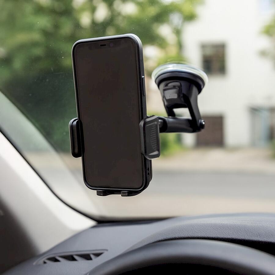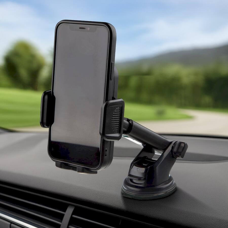 Priekšējais stikls – elastīga roka ar piesūcekni ideālai tālruņa pozīcijai.