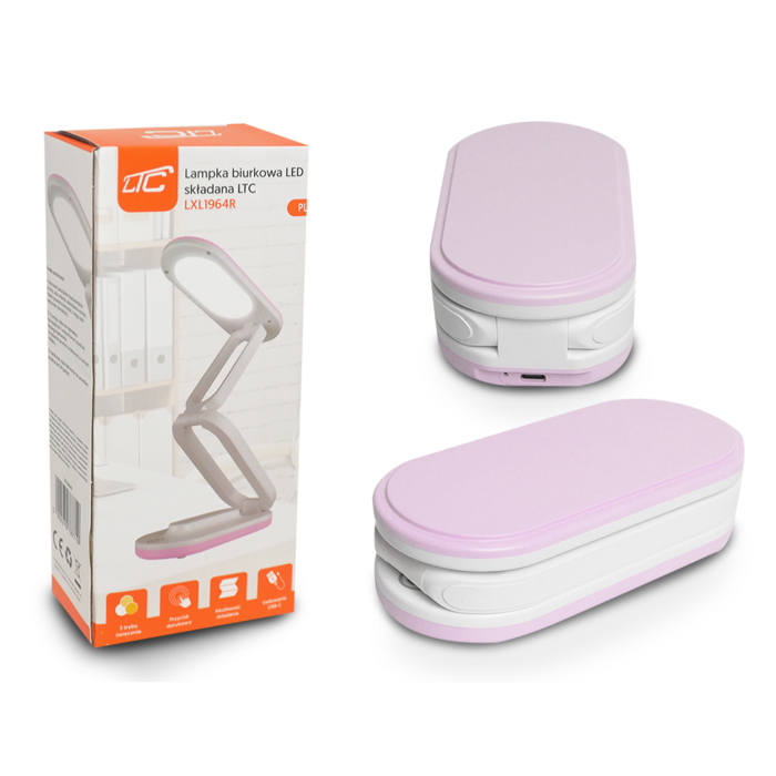 Saliekama LED galda lampa 10W, 3000/4500/6000K, 1200mAh, rozā, LTC