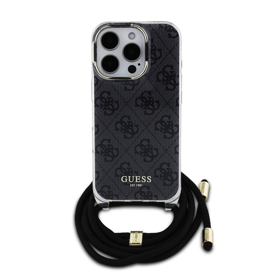 Guess IML 4G Printed Crossbody Strap Case Aizsargapvalks priekš iPhone 16 Pro Max / melns