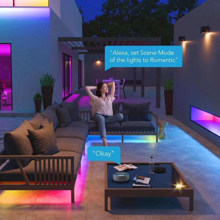 Izmantojot viedo balss vadību , varat piekļūt apgaismojumam brīvroku režīmā. Savienojiet pārī savus āra apgaismojumu ar Alexa un Google Assistant, lai pielāgotu krāsas, spilgtumu un daudz ko citu.