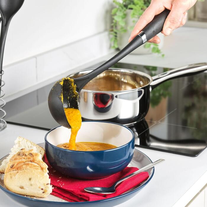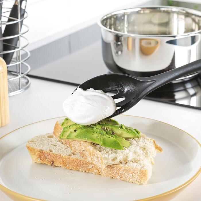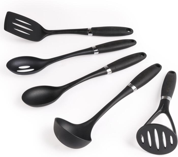 Ideāli piemēroti nepiedegošajiem virtuves traukiem, un tiem ir neilona galviņas, lai novērstu skrāpējumus un jūsu iecienītāko pannu bojājumus.