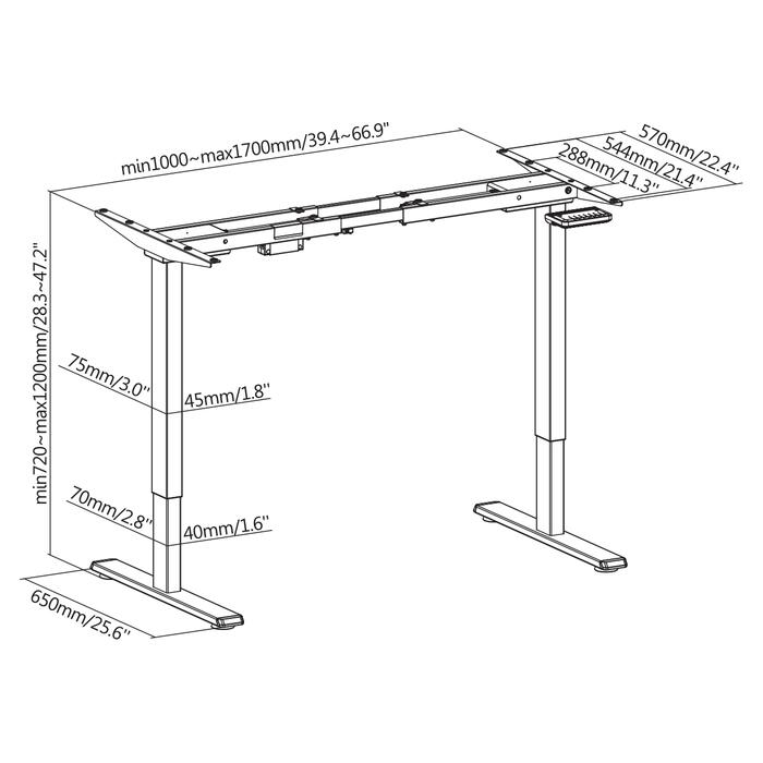 Pielāgojiet izmērus (100-170)x65x(72-120)cm atbilstoši jums, savukārt darbvirsmas iespējas (1100-2000)x(700-900)mm nodrošina plašumu.