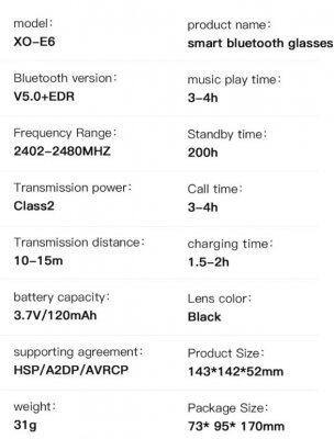 XO E6 Bluetooth Audio saulesbrilles UV400
