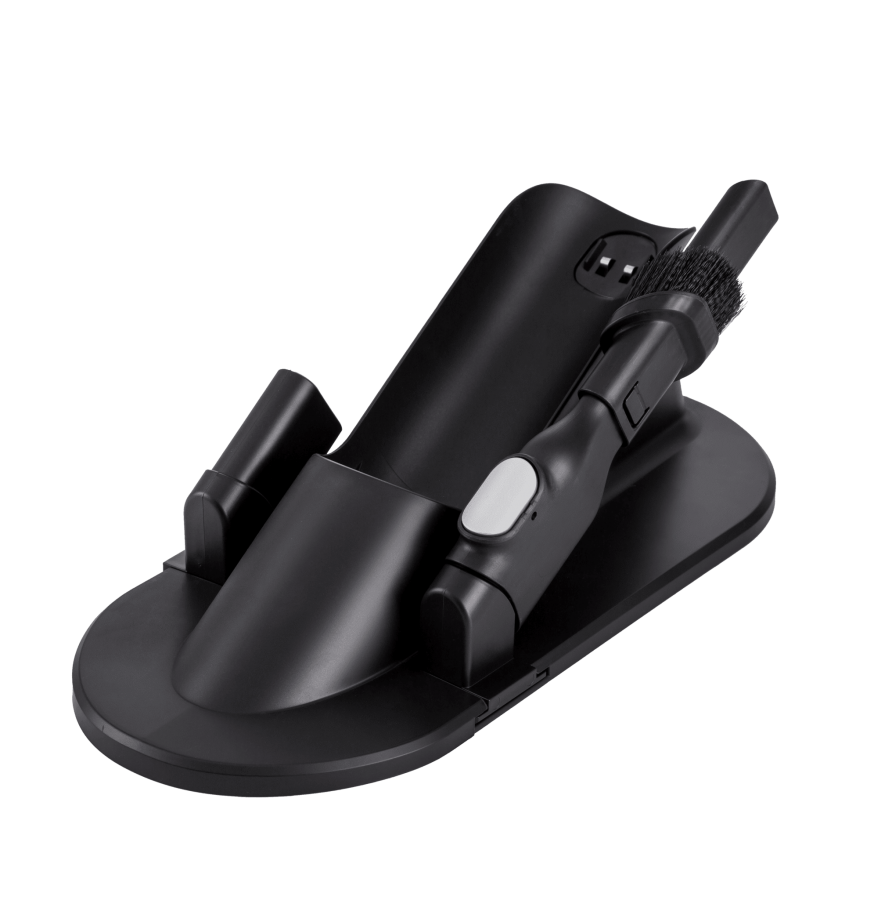 Statīvs ar uzlādes pamatni Efektīvs BLDC motors 11,1 V Motora jauda: 120 W Maksimālais sūkšanas spiediens: 12 kPa Divi ātrumi Darba laiks līdz 20 min, uzlādes laiks 3 stundas Klusa darbība, zem 60 dB HEPA filtrs Tilpums 0,3 l Izmērs: 42,5 x 7,5 x 7,5 cm Svars: 1,05 kg