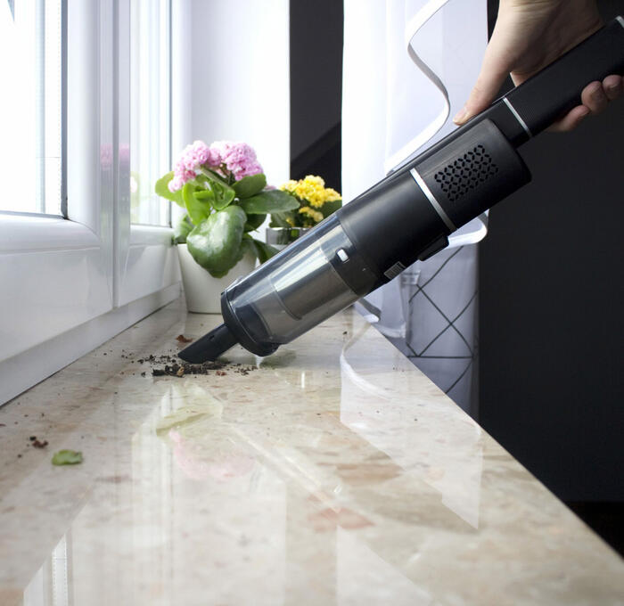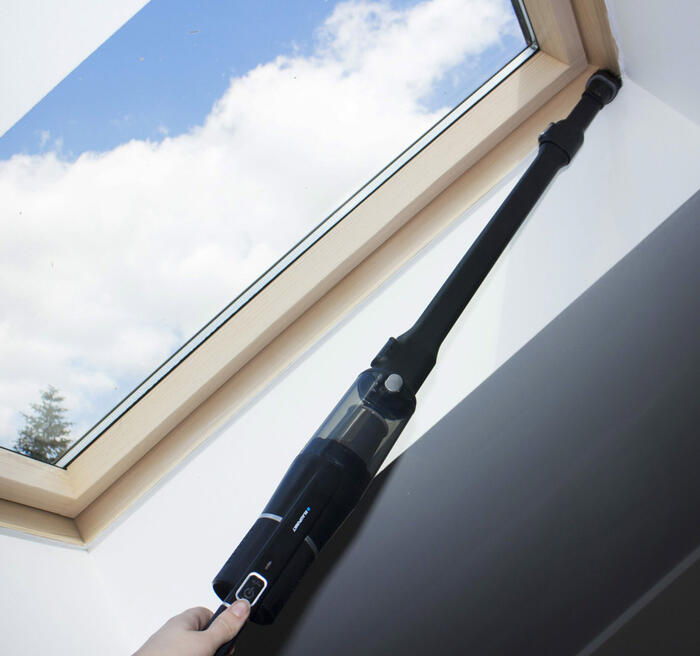 Komplektā ietilpst: galvenā iekārta, uzlādes pamatne, spraugu instruments 2 vienā, caurule, grīdas birste