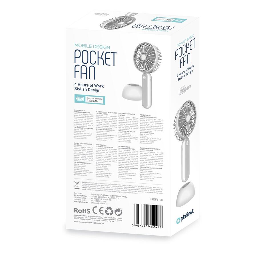 Platinet PRDF6108 Uzlādējams pārnēsājams ventilators 3W / 1200mAh