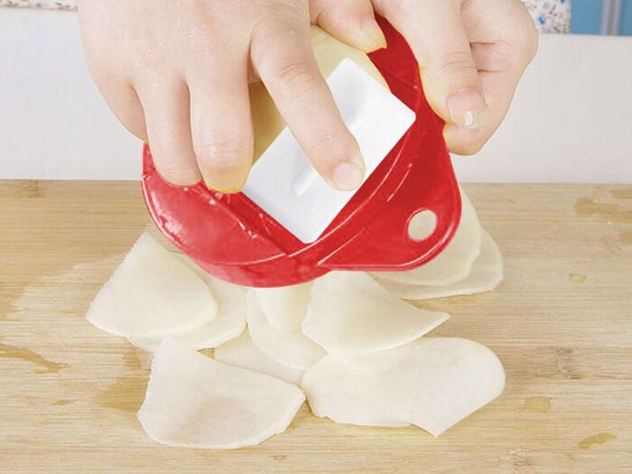 Plastmasas dārzeņu slaiseris un tērauda asmeņi ar plastmasas pirkstu aizsargu, BPA nesaturoša polipropilēna plastmasa