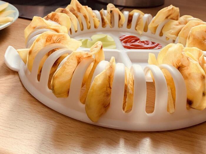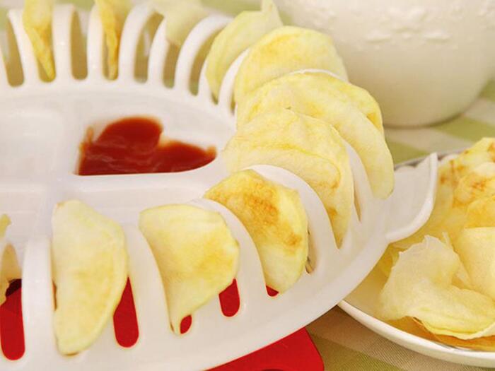 Ideāli piemērots ātrai kartupeļu čipsu pagatavošanai mikroviļņu krāsnī bez pievienotiem taukiem vai eļļām