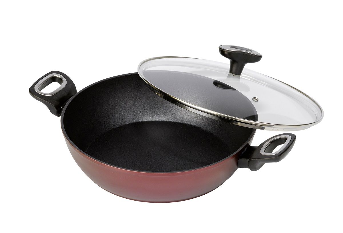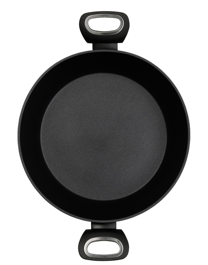 Dziļā pannā 24 cm. ar rūdīta stikla vāku. Augstums 6,8 cm. Tilpums 2,4 L