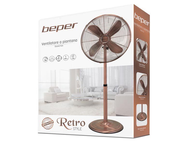 ● Elegants vara grīdas ventilators ar retro dizainu.
