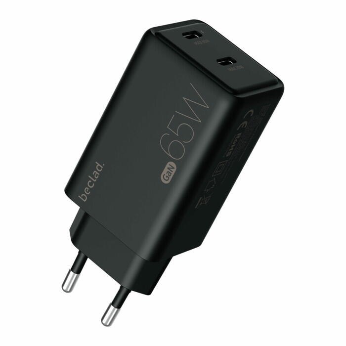 beclad. 65W C tipa 2 pieslēgvietu ceļojuma adapteris (C+C) melns BE-PT765CBG-GR