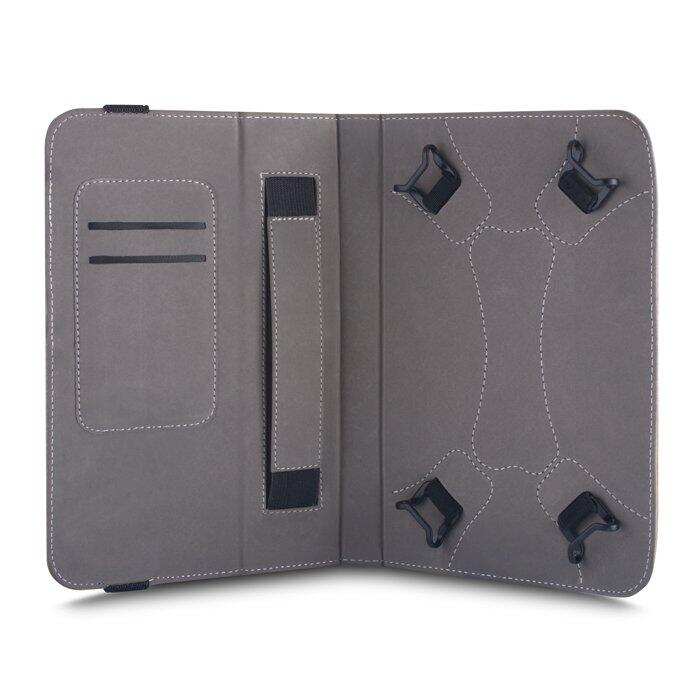 Augstas kvalitātes maks planšetdatoriem. Speciāli turētāji no kvalitatīva plastikāta ļaus ievietot jebkuru planšeti ar 7-8 collu ekrānu.