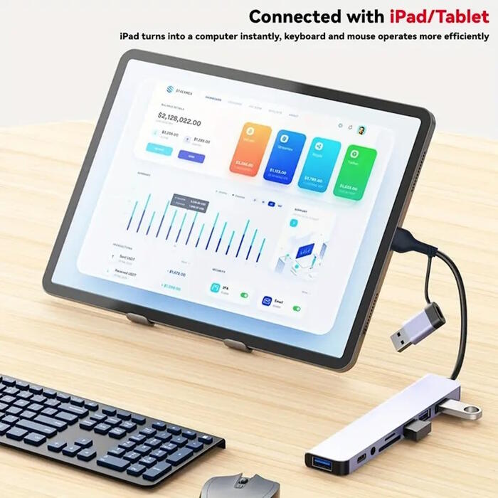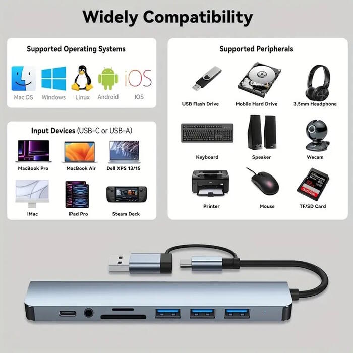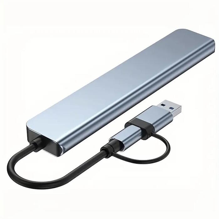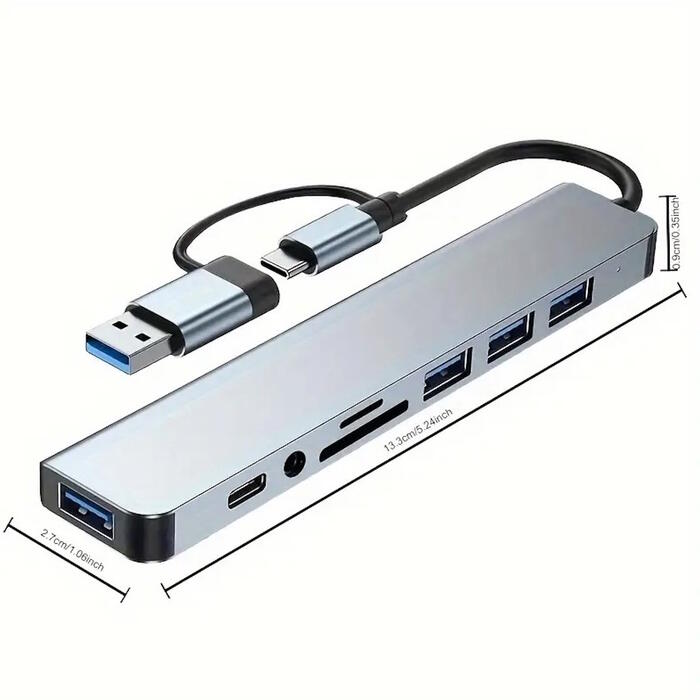 Riff VSZAPOWER 8-in-1 universāls alumīnija 8 portu USB C tipa centrmezgls - komplektā ietilpst USB 3.0, 3 USB 2.0 porti, Micro SD/TF karšu lasītājs, a