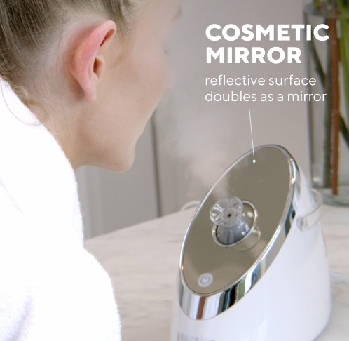 Nano izmēra tvaika daļiņas, kas ir smalkākas nekā parastais tvaiks, iekļūst dziļāk ādas ārējā slānī, atverot poras. Poru atvēršana bieži vien mīkstina pinnes, padarot tās vieglāk noņemamas. Jūs varat arī panākt labāku ādas kopšanas līdzekļu uzsūkšanos ar savu jauno Nano Facial Steamer. Tā elegantais dizains salīdzinājumā ar kompakto, pārnēsājamo pamatierīci ar viegli noņemamu ceļojuma siksnu padara HoMedics Nano Facial Steamer par novatorisku jauninājumu salīdzinājumā ar tradicionālajiem sejas tvaicētājiem. Piemērots visiem ādas tipiem, esiet precīza ar kosmētikas spoguļa paneli savā Nano Facial Steamer.