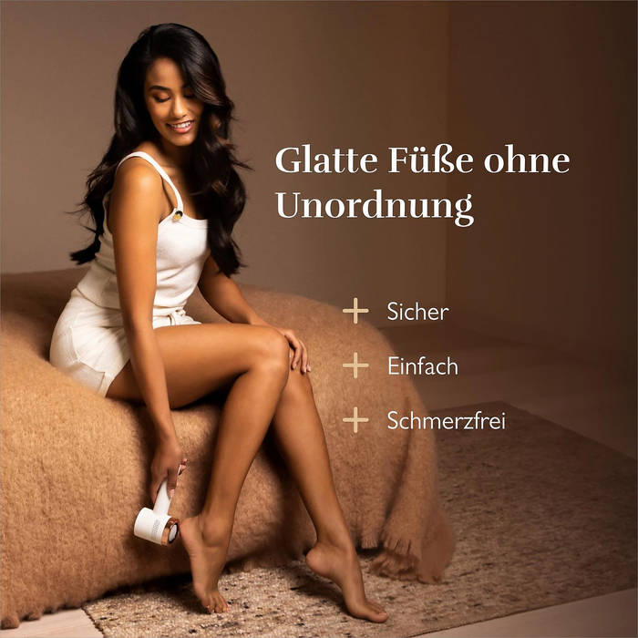 Vienkārša ādas sabiezējumu noņemšana: mikrominerālu apstrādes diski griežas līdz pat 1550 apgr./min., lai izlīdzinātu raupju, varžacainu ādu.