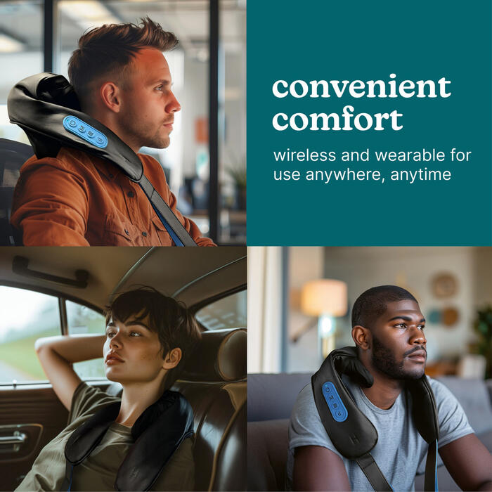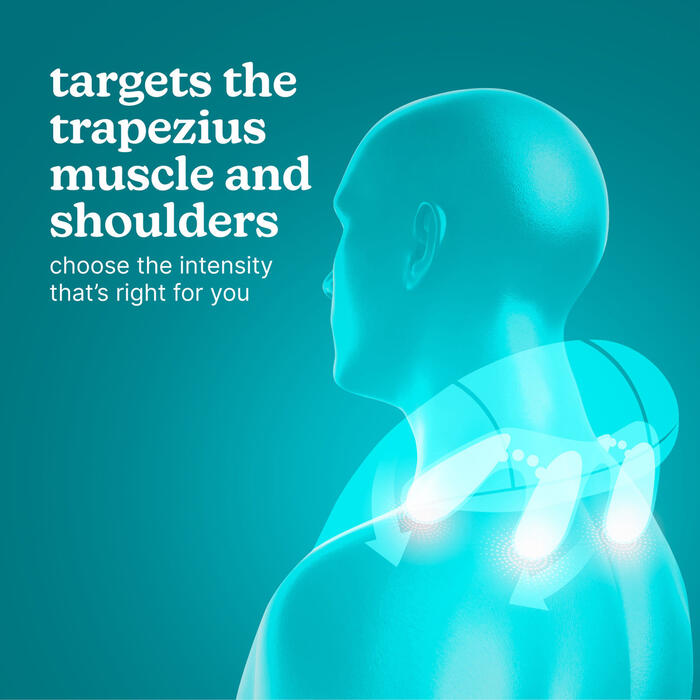 2 relaksējošas kakla un plecu masāžas programmas, 2 intensitātes iestatījumi un 1 nomierinoša siltuma funkcija