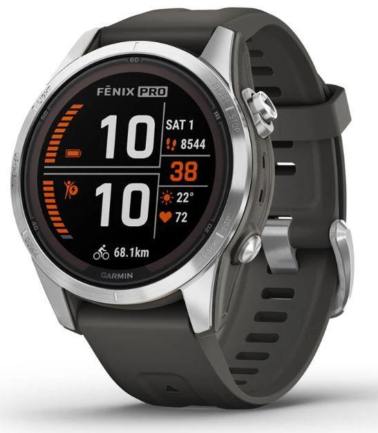 fenix 7S Pro – Solar Edition | Screen 1.2" | Resolution 240 x 204 | Wireless connections WLAN/Bluetooth | Memory 32 GB | Material Silicone rubber | GPS | Material housing Stainless steel | Colour Graphite | Weight 0.063 kg