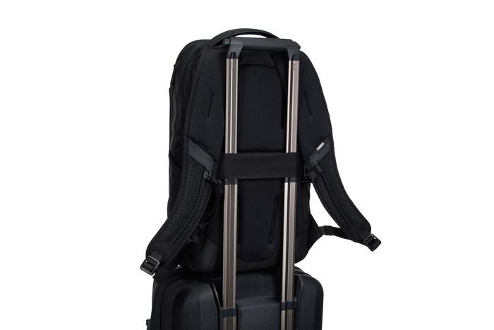 Caurlaides panelis ļauj piestiprināt somu pie riteņbagāžas, lai atvieglotu ceļošanu.