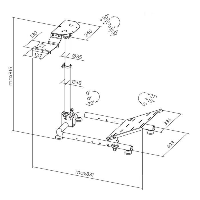 Pārdefinējiet savu kontroli ar stūres paneļa slīpumu no -30° līdz +30° un pedāļu paneļa slīpuma iespējām no 0°/15°/27°.