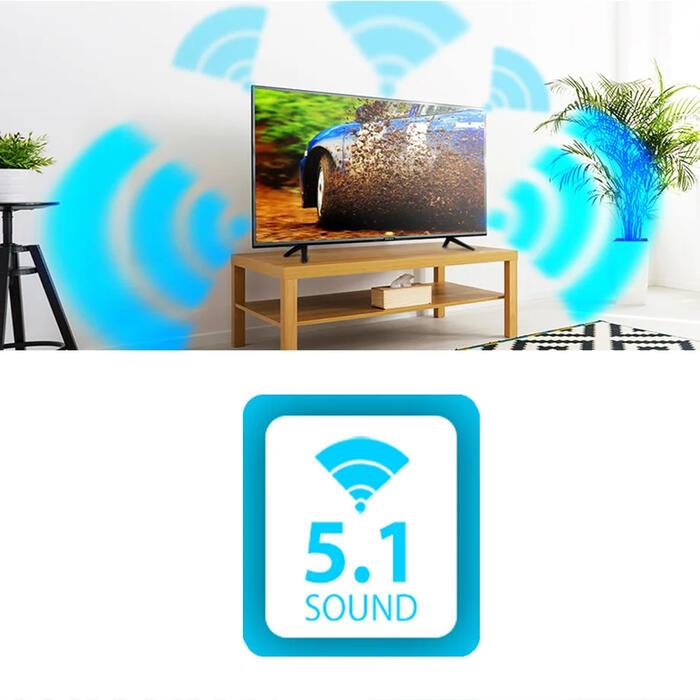Komplektā: televizors, pults, AAA baterijas, garantijas talons, kājiņas uzstādīšanai