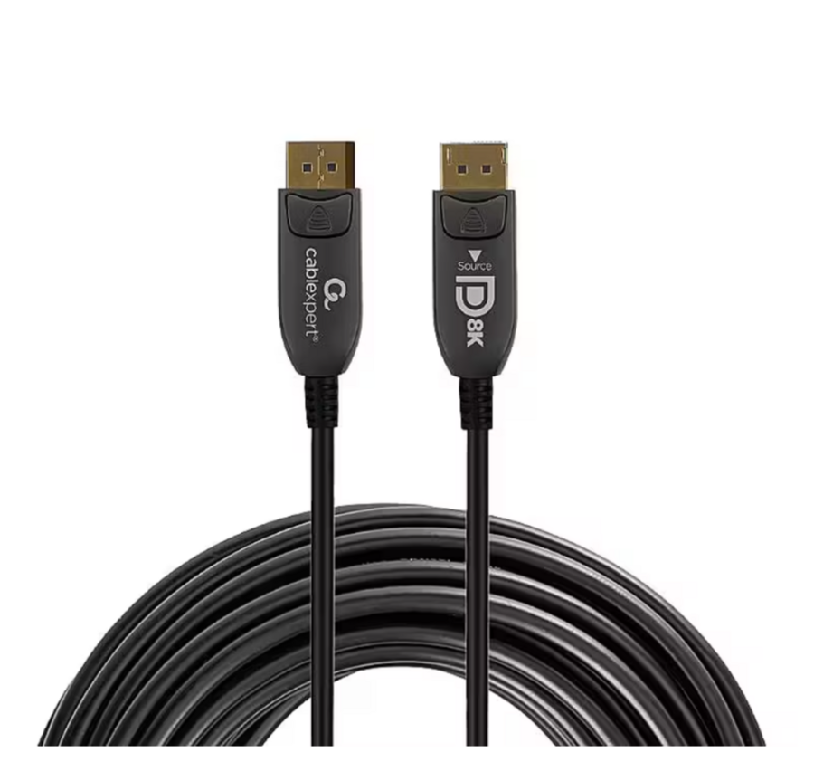 Gembird CC-DP8K-AOC-10M ir aktīvais optiskais DisplayPort kabelis 10 m, kas nodrošina ātru video un audio pārraidi lielos attālumos. Atbalsta izšķirtspēju līdz 8K UHD (7680×4320) @ 60 Hz un 4K @ 120 Hz, ideāli piemērots spēlēm, video rediģēšanai un profesionāliem displejiem. Plug & Play nodrošina vienkāršu pieslēgšanu bez draiveriem. Aktīvā optika samazina signāla zudumus garos kabeļa gabalos un pilnībā saderīga ar DisplayPort 1.4.