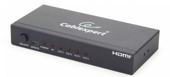 DSP-4PH4-02HDMI splitter, 4 portsPERFECT CONNECTIONSends a single HDMI signal to 4 displaysSignal amplifier - Improves signal qualityPerfect for home theatres, class- and conference roomsSends a single HDMI signal to 4 separate monitors, projectors or TV’sThe digital 225 MHz bandwidth amplifier increases the transmission distance with about 10 meters and also improves signal qualitySupports 3D video  The information provided on this page is a property of the manufacturer or the brand.To find out more, please visit:  http://www.gembird.com