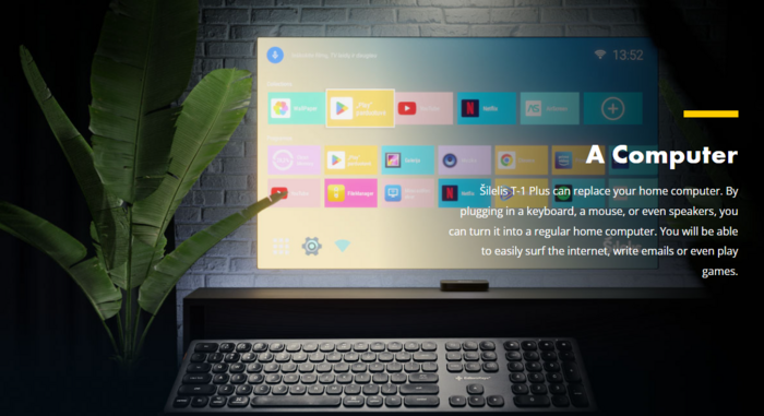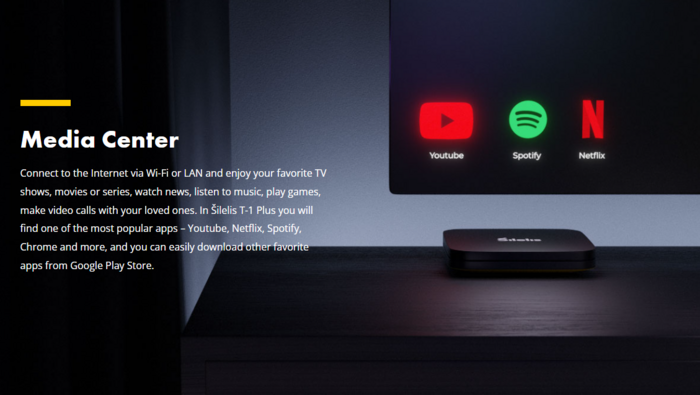 Šilelis T-1 Plus ir jaunās paaudzes televizora multimediju atskaņotājs, kas padara jūsu televizoru vai projektoru viedu. Skatieties savas iecienītākās filmas, pārlūkojiet internetu, skatieties YouTube, Netflix, klausieties mūziku, spēlējiet spēles vai sazinieties ar saviem mīļajiem, pievienojot tīmekļa kameru. Jums vairs nebūs jāsteidzas no darba, lai noskatītos raidījumu, kas jums patīk, varat to skatīties ar savas iecienītākās lietotnes palīdzību. Izmantojiet visas Šilelis iespējas bez ierobežojumiem.