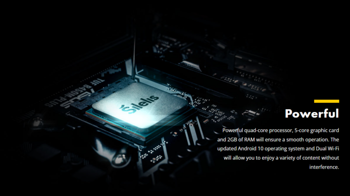 Veiktspēja – četrkodolu centrālais procesors, Allwinner H313, Cortex – A53, 2 GB RAM, 16 GB ROM