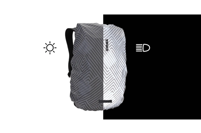 Lietus pārsegs viegli ievietojams integrētā kabatā, lai nodrošinātu akurātu uzglabāšanu, kad tas nav nepieciešams.