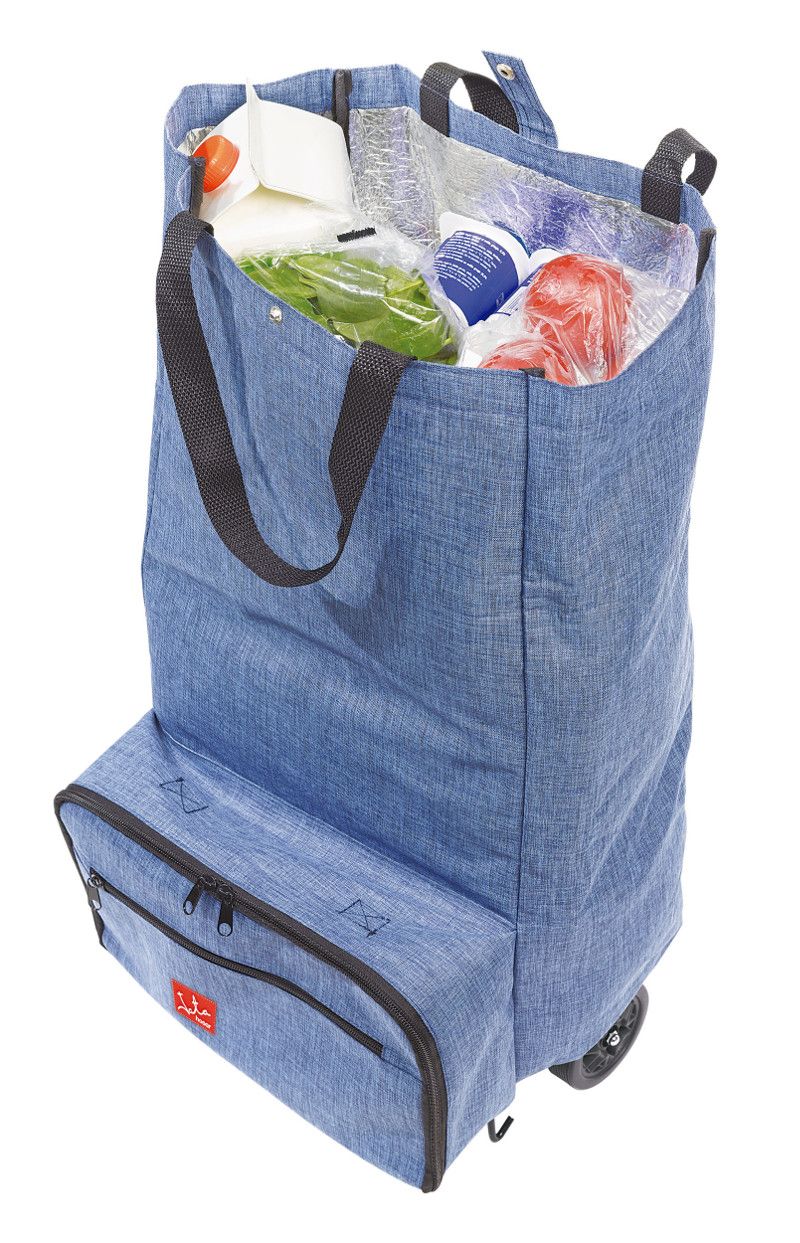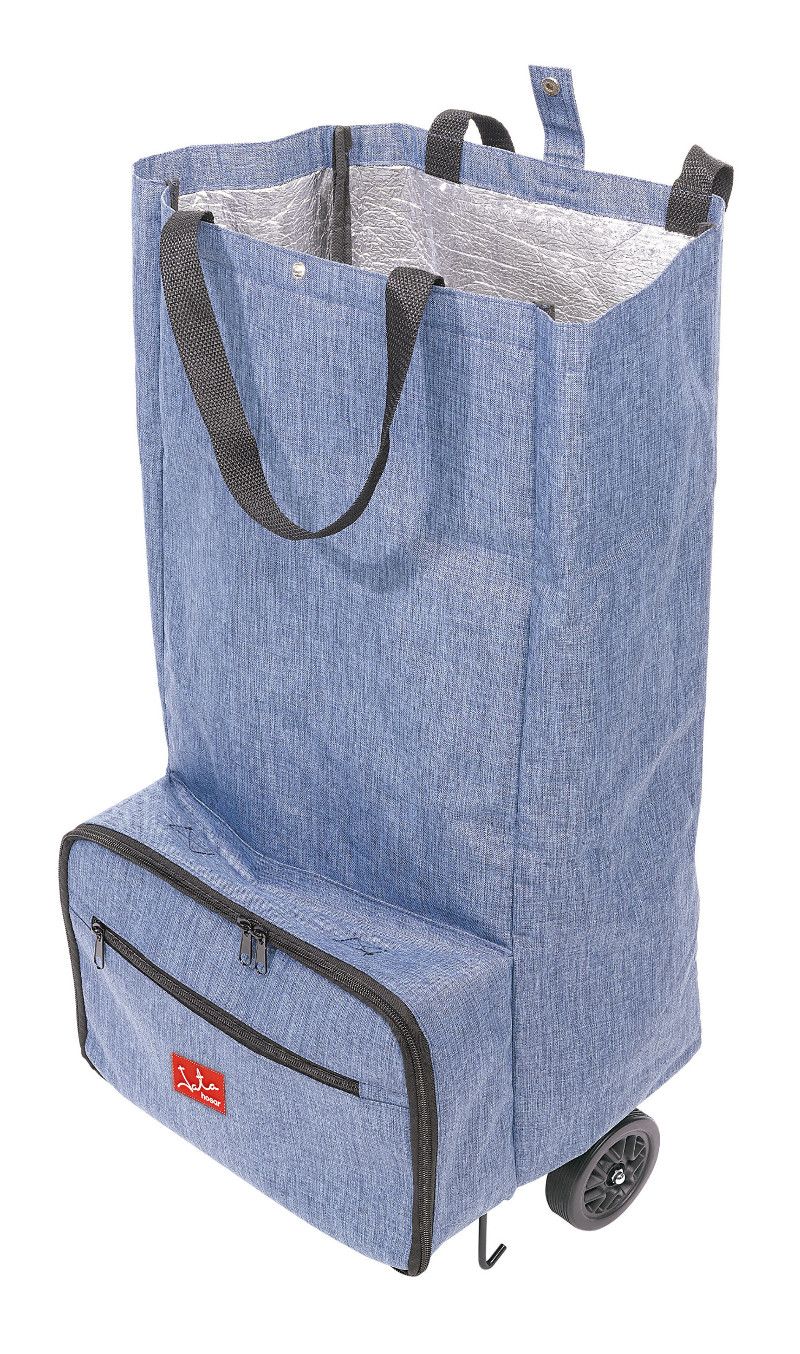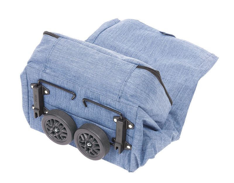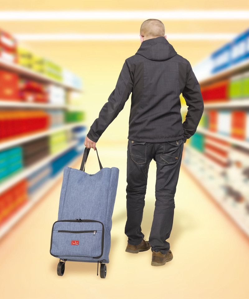 Kompakti salokāmi maisiņa ratiņi ar rokturi.