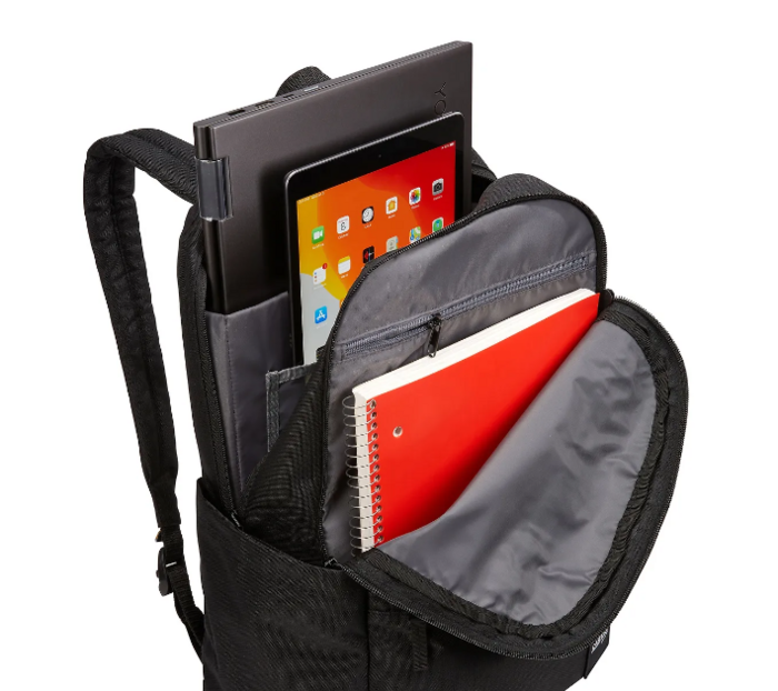 Polsterētais futrālis ir piemērots klēpjdatoriem līdz 15,6 collu, un speciāla ieslidināmā kabata ir piemērota planšetdatoriem līdz 10 collu.