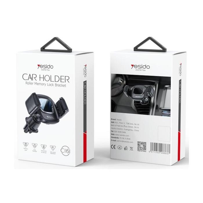 YESIDO zīmola universālais automašīnas turētājs ir ļoti funkcionāls izstrādājums, kas izstrādāts, domājot par ērtībām un, pats galvenais, drošu mobilo ierīču lietošanu automašīnā. Uz ventilācijas atveres piestiprinātais uzticamais piederums ir aprīkots ar 360 grādu rotējošu galviņu, lai lietotājam nodrošinātu vēl vairāk iespēju viedtālruņa attēlošanai un lietošanai braukšanas laikā. C161 ir aprīkots ar standarta funkcijām un piedāvā drošu un stabilu risinājumu ikvienam.