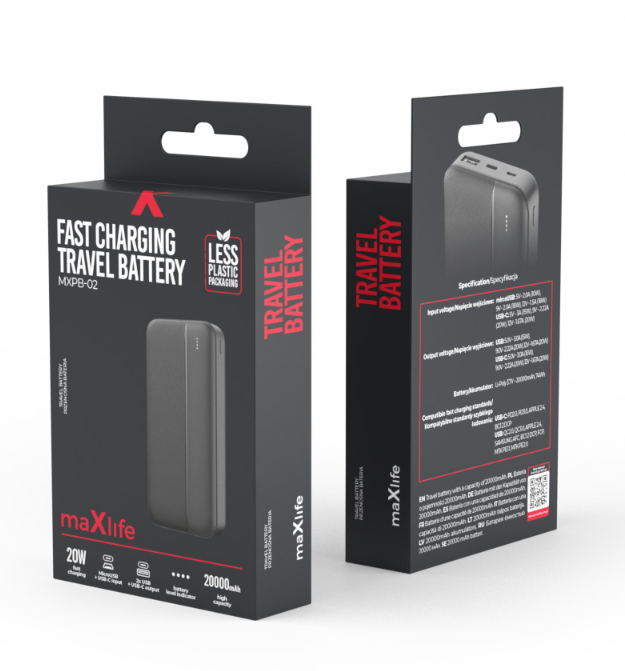 Maxlife MXPB-02 Power Bank Ārējas Uzlādes Baterija PD / QC / 20W / 20000 mAh