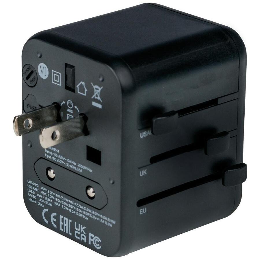 • Универсальный адаптер для 180+ стран с поддержкой розеток EU, UK, US, AU и других