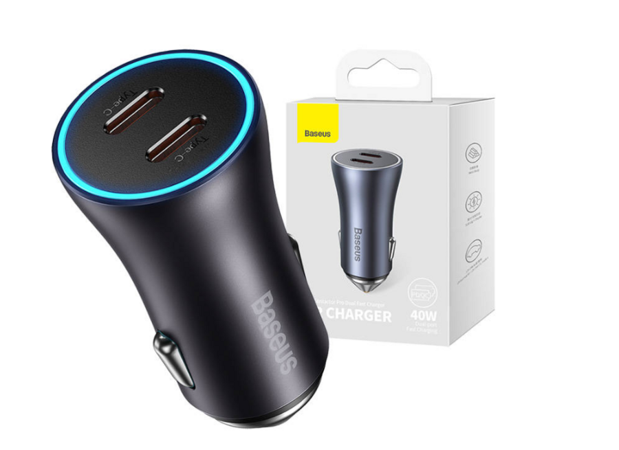 Автомобильное зарядное устройство Baseus Golden Contactor Pro, 2x USB-C, 40 Вт (серое)