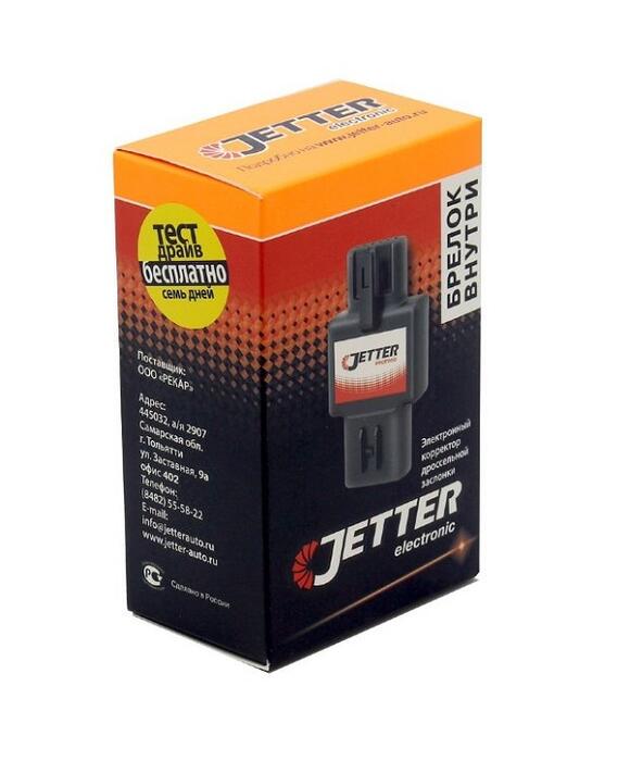 JETTER выполнен в виде отдельного законченного модуля, подключаемого в разъем датчиков положения на педали акселератора. Каких-либо доработок деталей автомобиля для подключения JETTERа не требуется. JETTER содержит микропроцессор, который преобразует сигналы с датчиков положения педали акселератора и передает их в контроллер системы управления двигателем.