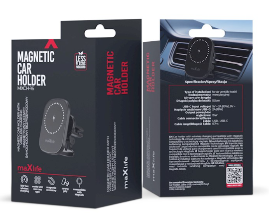Maxlife MXCH-16 Магнитный Aвтомобильный Держатель + Беспроводная Зарядка 15W
