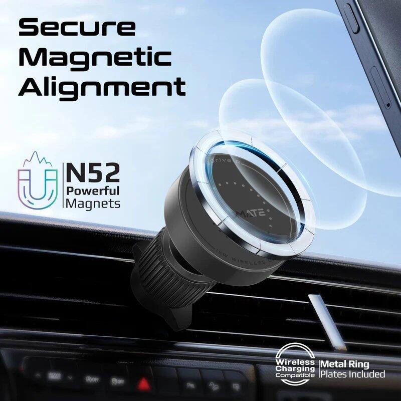 MagDrive-R - это удобство вождения с 15W совместимым с MagSafe автомобильным держателем для беспроводной зарядки, разработанным для бесперебойной работы в пути. Независимо от того, крепится ли он на вентиляционное отверстие кондиционера, приборную панель или лобовое стекло - его втягивающийся кабель USB-C можно легко отрегулировать по желаемой длине, что обеспечивает аккуратность и порядок на вашей автомобильной панели. Благодаря быстрому и надежному креплению с мощными магнитами N52 и инновационной конструкции с защитой от тряски, MagDrive-R обеспечивает надежное крепление и легкое вращение на 360°.